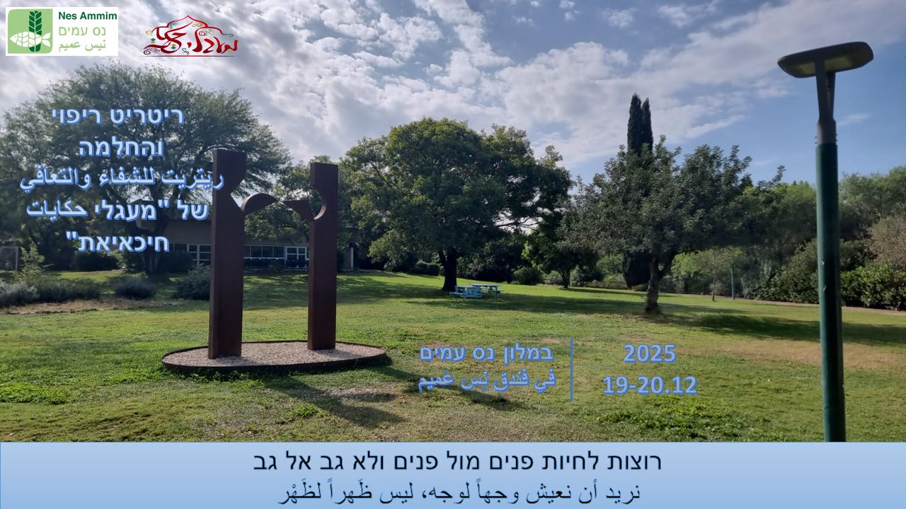 "في 19–20 من كانون الأول، سنلتقي ليومي ريتريت في نس عميم. سارعي بالتسجيل، عدد الأماكن محدود وذلك من أجل توفير مساحة خاصة، علاجية وداعمة.